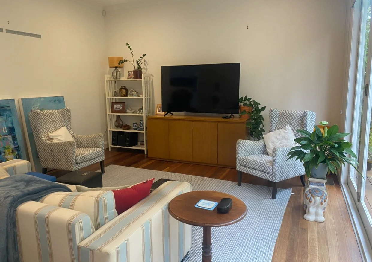The living room received built-in cabinetry with VJ panelling, layered with brass picture wall lights, a new rug, side table, and lamps. These updates added texture, warmth, and personality, making the living area both stylish and functional.