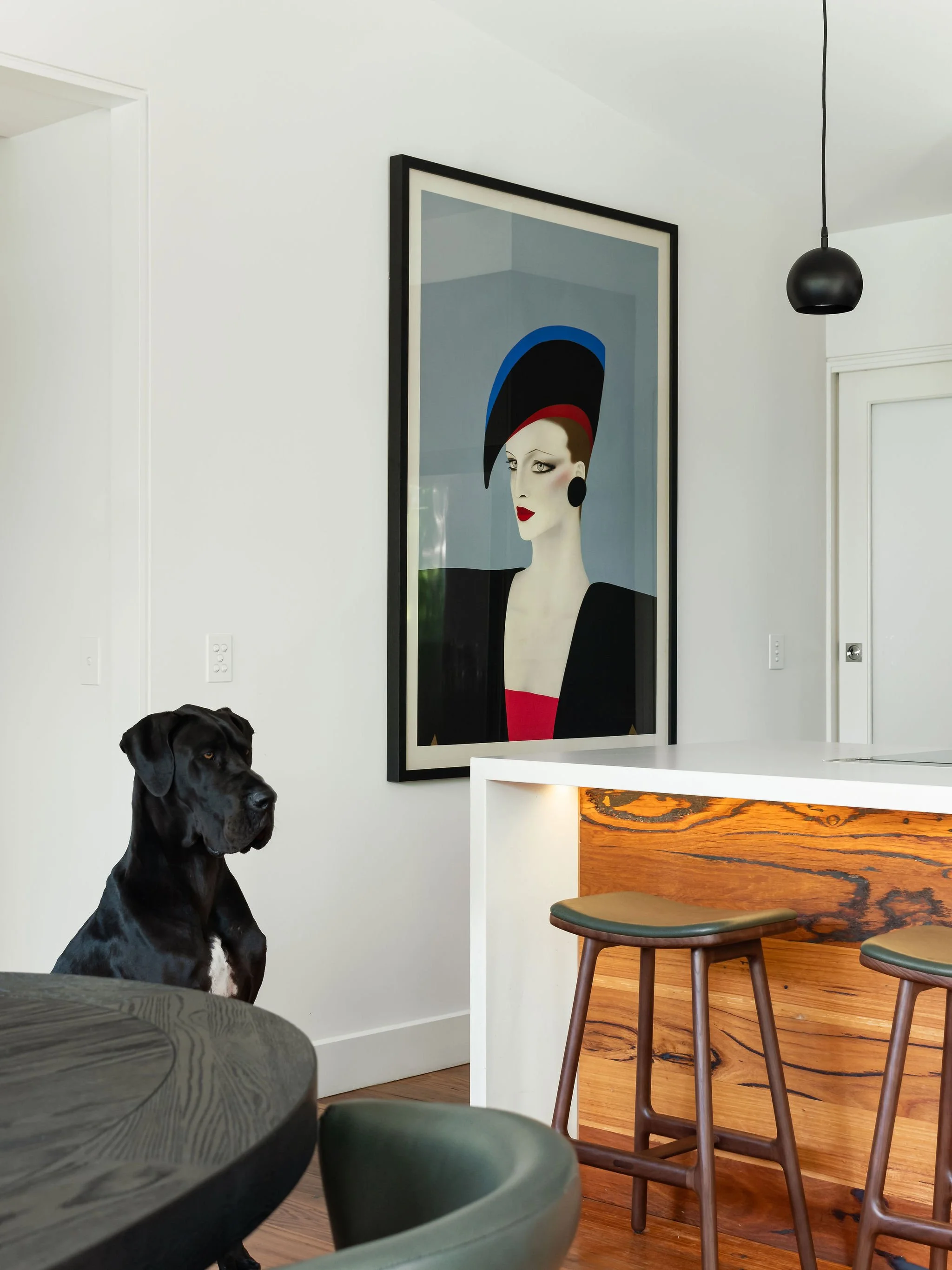 Our client, a busy fly-in fly-out professional, reached out to ML Interior Design after purchasing a brand-new home in the vibrant suburb of Yarraville. With a packed schedule and a love for entertaining, he needed a fully furnished home that reflected his mid-century modern taste. There was one non-negotiable: the home had to be dog-friendly for his beloved Great Dane, Winston.